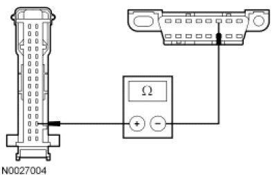 - Measure the resistance between the DLC C251-6, circuit 1827 (WH/LG), harness side and the DLC C251-14, circuit 1828 (PK/LG), harness side.