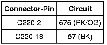 - Measure the resistance between the IC C220-31, circuit 1828 (PK/LG), harness side and the DLC C251-14, circuit 1828 (PK/LG), harness side.