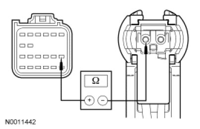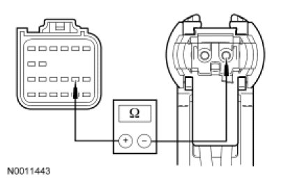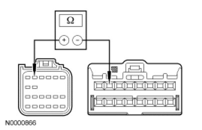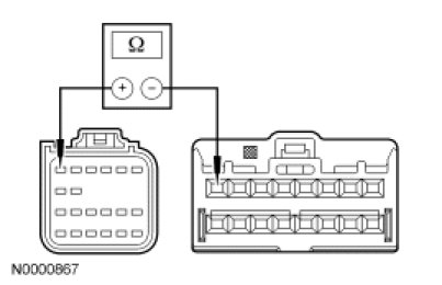 - Measure the resistance between RCM C310a-6, circuit 1517 (RD/OG), harness side and clockspring C218a-8, circuit 1517 (RD/OG), harness side.