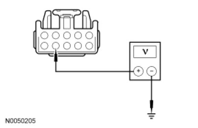 - Measure the voltage at ignition switch C250-9, circuit 1050 (LG/VT), harness side and ground.