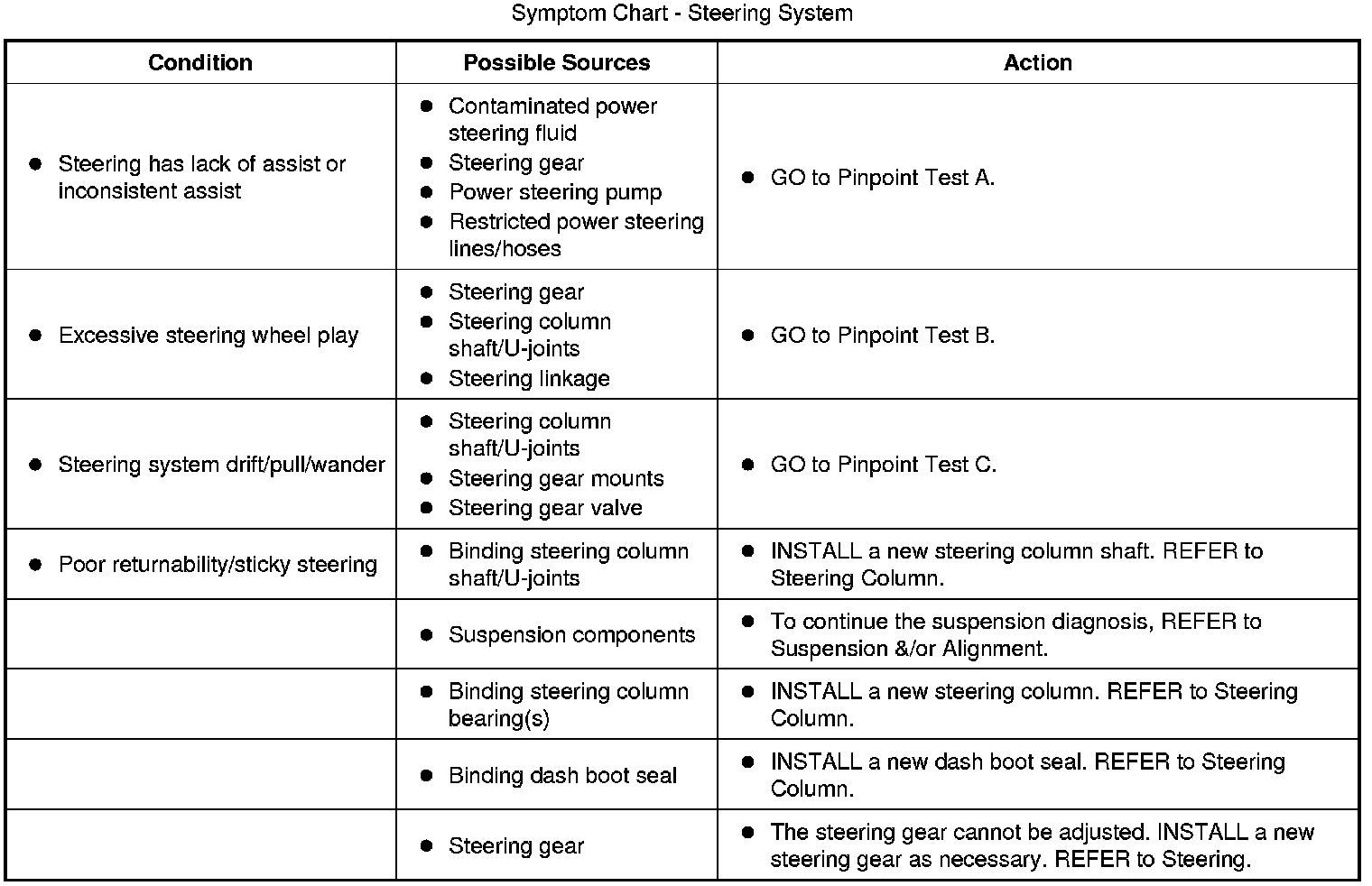Symptom Chart - Steering System