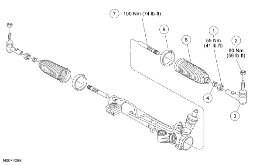 NOTICE: Lubricate the inner tie-rod inner groove with grease where the bellows boot is clamped. Make sure that the bellows boot is positioned correctly over the steering gear housing bead at the large inside diameter and is in the inner tie-rod groove at the small inside diameter.