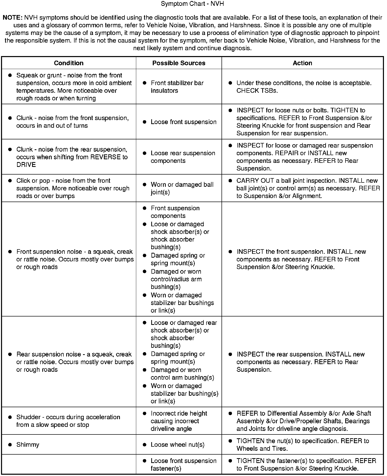 Symptom Chart - NVH