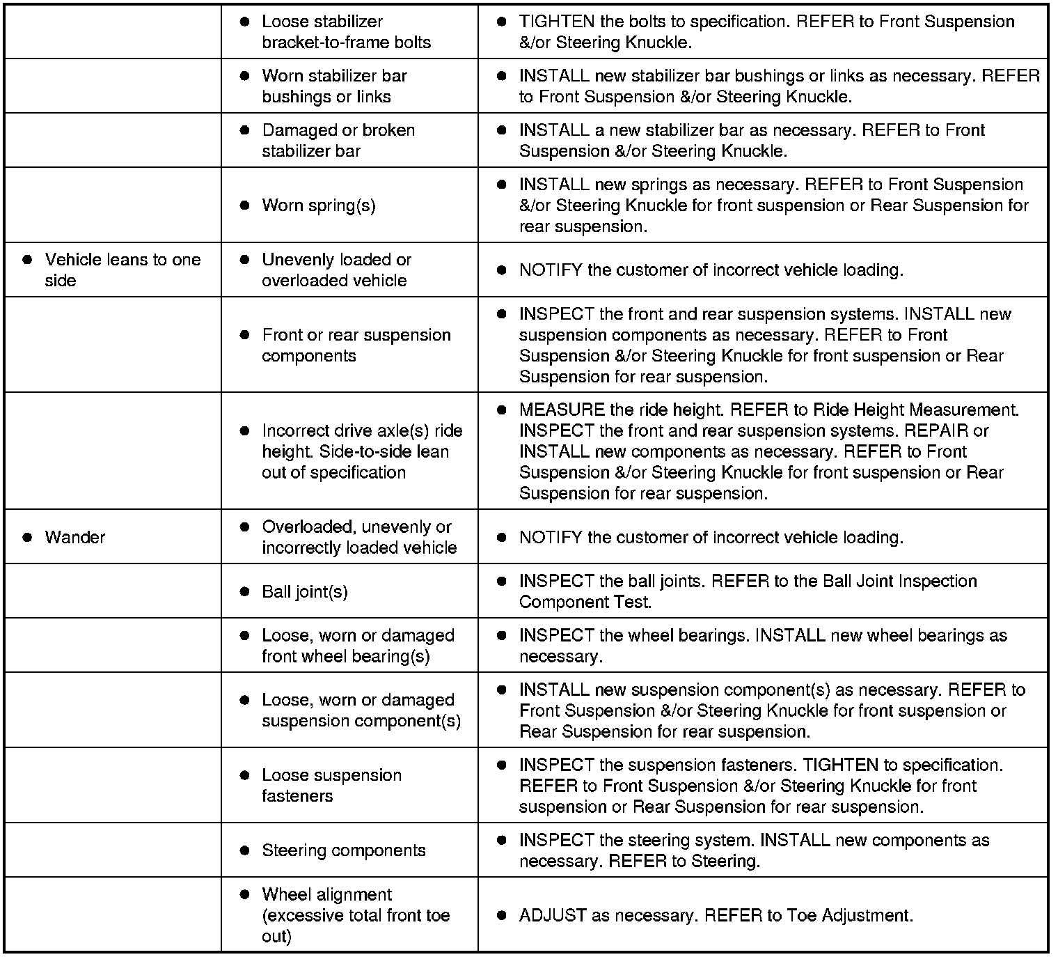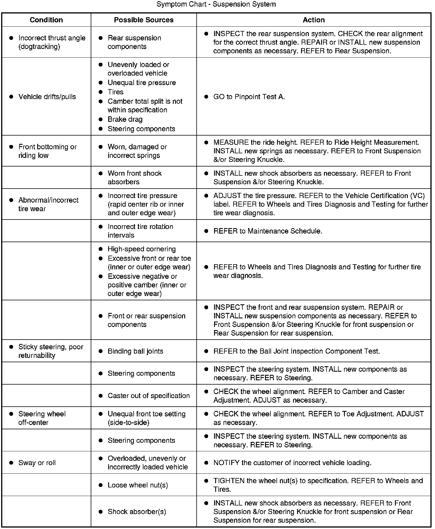 Symptom Chart - Suspension System