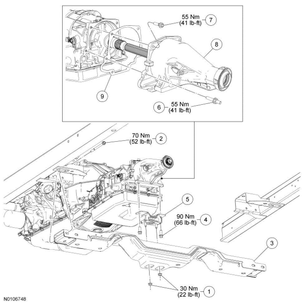 5. Install the driveshaft. For additional information, refer to Drive/Propeller Shafts, Bearings and Joints.