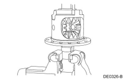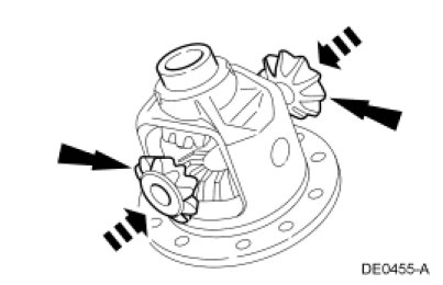 NOTE: If the differential ring gear backlash between teeth is greater than specification, remove the ring gear to check the differential case flange runout. Do not disassemble the differential carrier assembly.