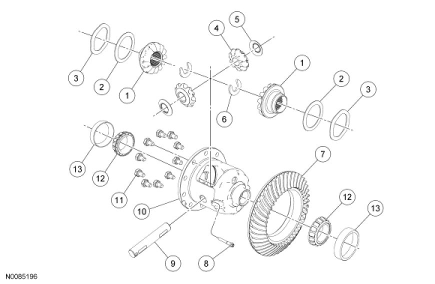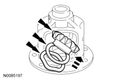 1. NOTE: Lubricate the differential side gear thrust washers, wave washers and the side gear journals with axle lubricant.