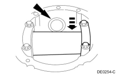 3. NOTE: If a feeler gauge can be inserted between a drive pinion bearing cup and the bottom of its bore at any point around the drive pinion bearing cup, the drive pinion bearing cup is not correctly seated.