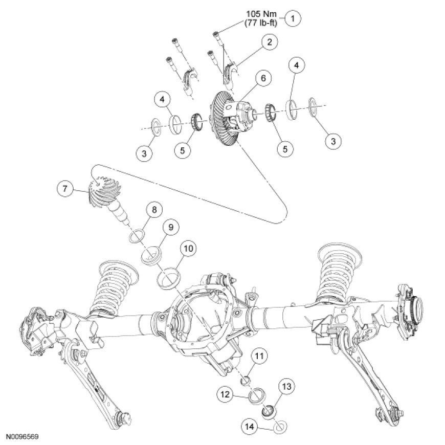 - Tighten to 105 Nm (77 lb-ft).