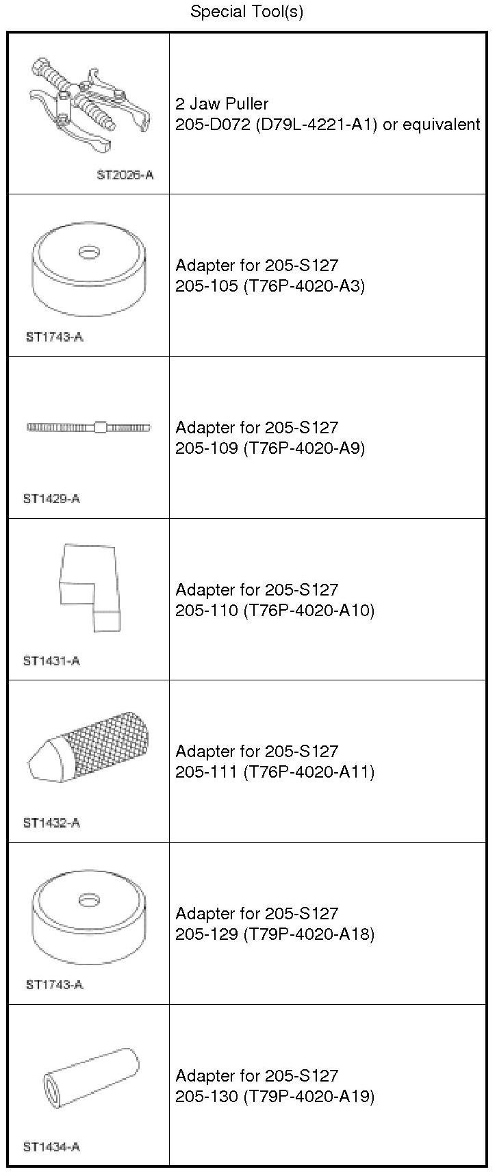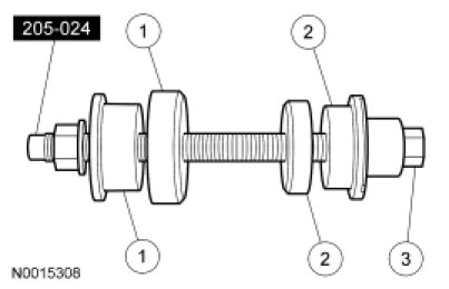 - After the correct drive pinion bearing adjustment shim thickness has been determined, remove all of the Adapters.