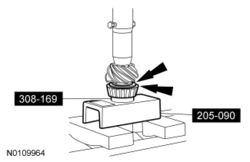 7. Using the Bearing Puller and a suitable press, remove the inner pinion bearing.