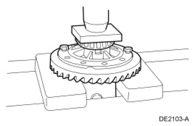15. Install the 10 new differential ring gear bolts. Tighten in 2 stages.