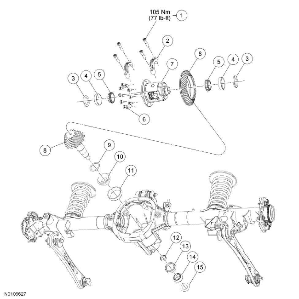 - Tighten to 105 Nm (77 lb-ft).