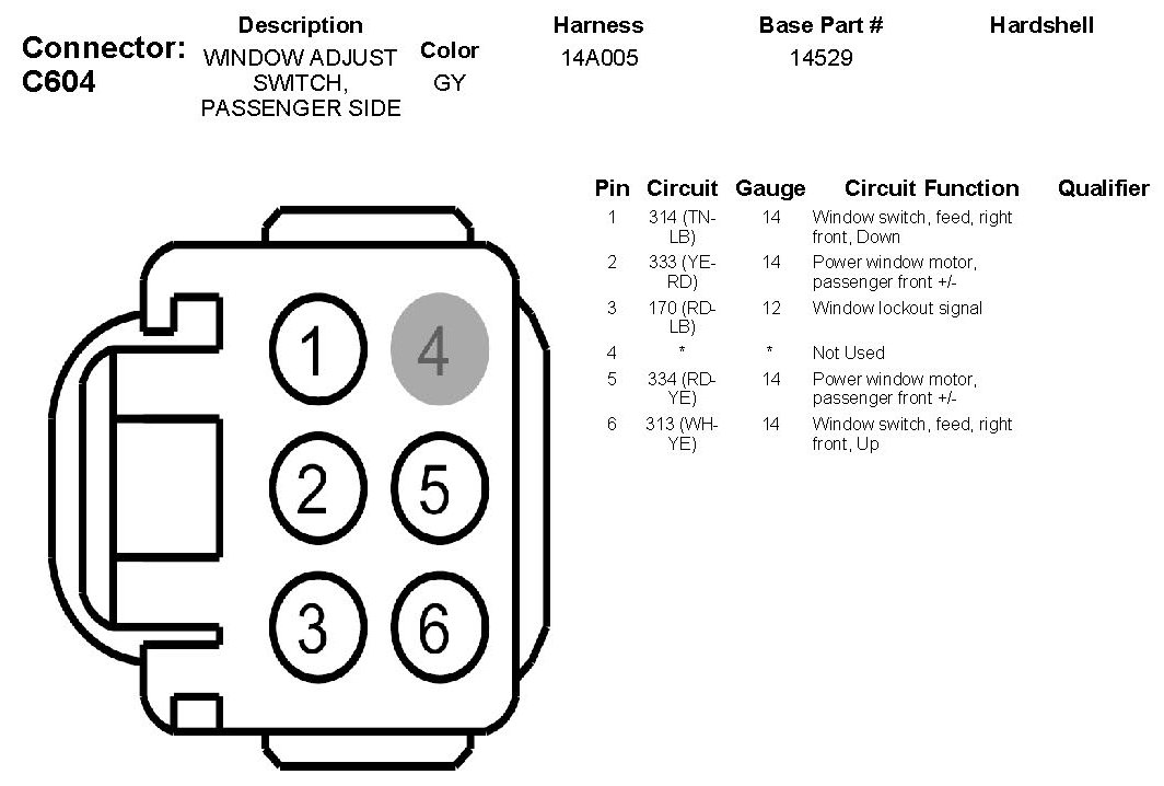 Window Adjust Switch, Passenger Side