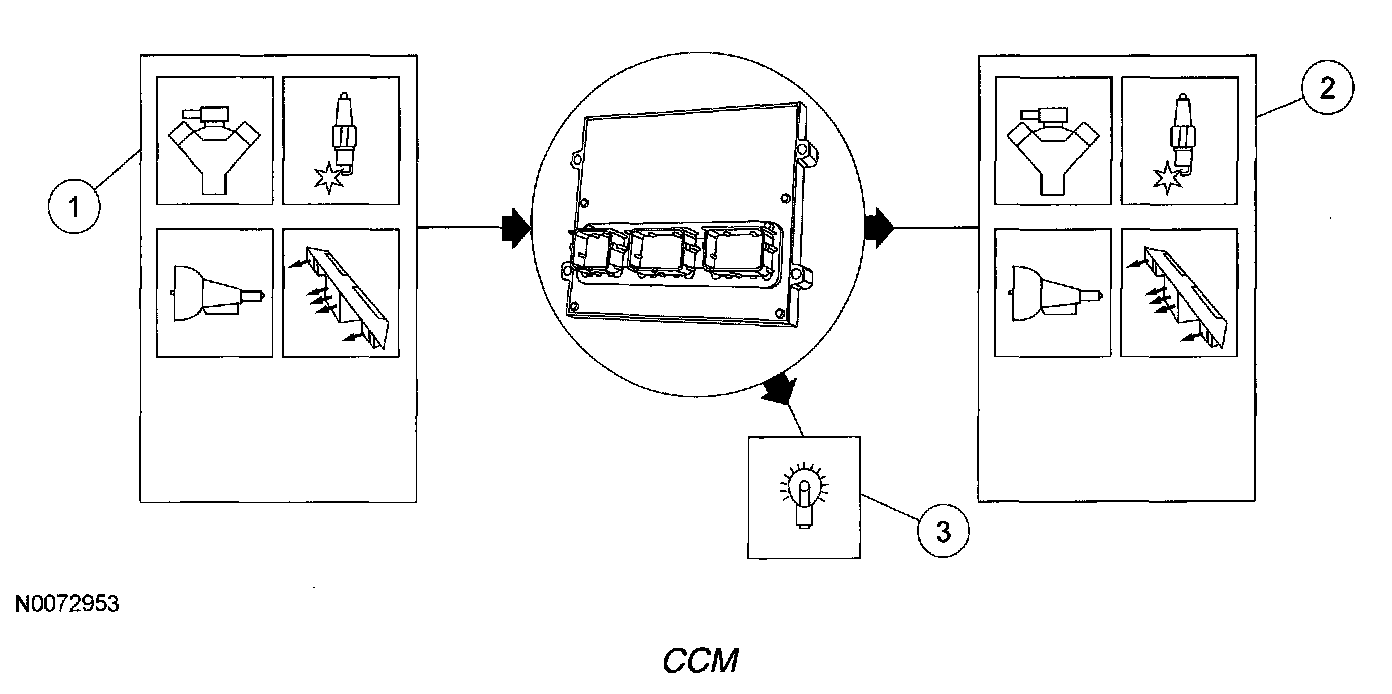 3. The CCM is enabled after the engine starts and is running. A diagnostic trouble code (DTC) is stored in keep alive memory (KAM) and the malfunction indicator lamp (MIL) is illuminated after 2 driving cycles when a concern is detected. Many of the CCM tests are also carried out during an on-demand self-test.