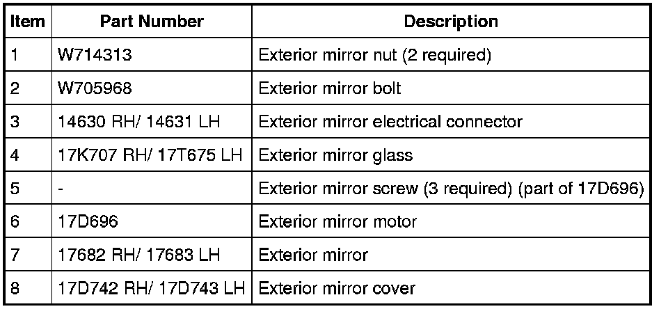 Exterior Mirrors - Exploded View