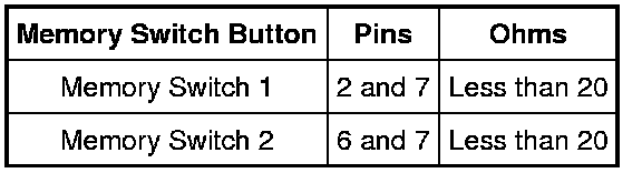 - Measure the resistance between the memory SET switch pins, component side, while pressing the indicated switch buttons and compare the results to the table.