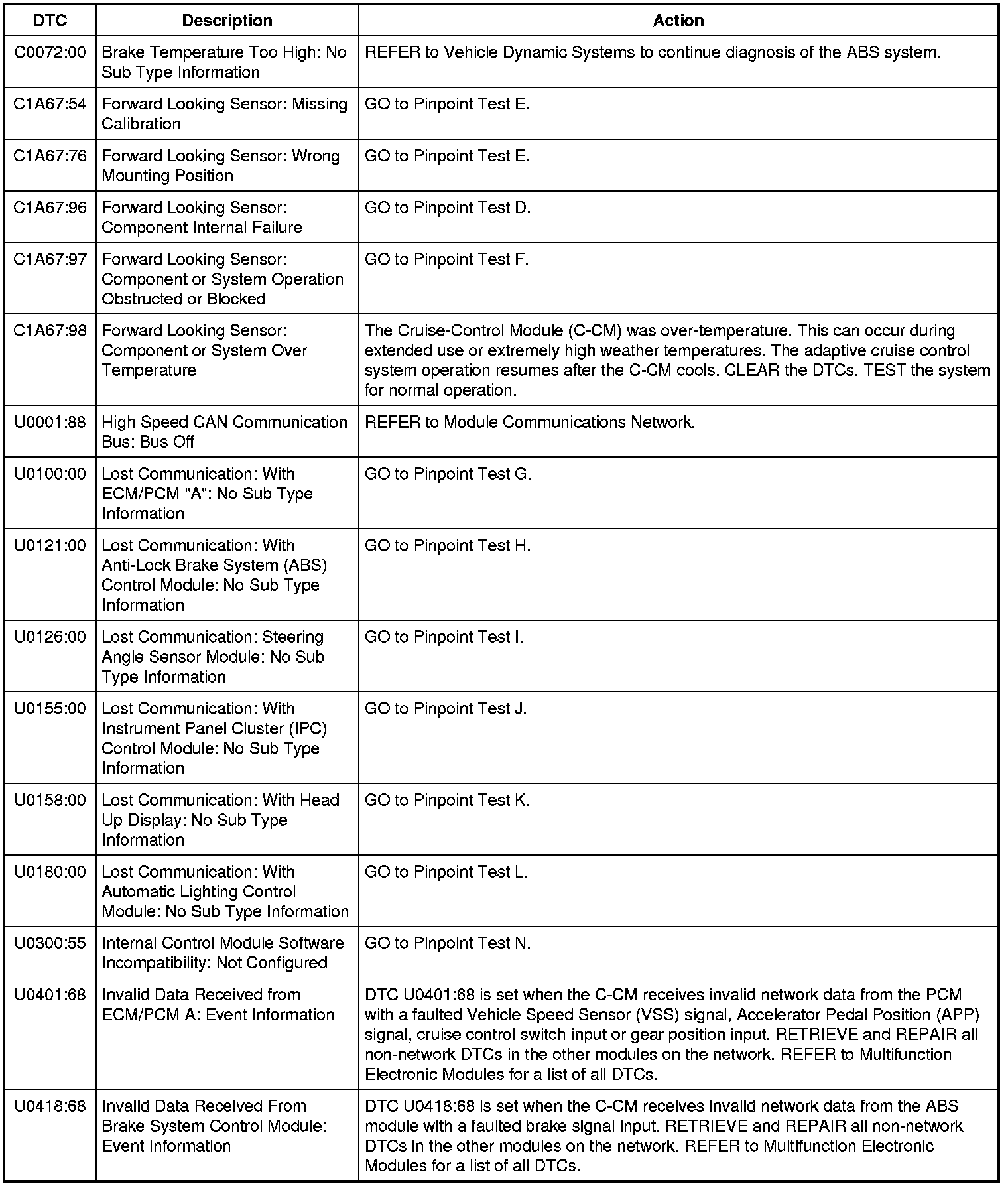NOTE: This module utilizes a 5-character DTC followed by a 2-character failure-type code. The failure-type code provides information about specific fault conditions such as opens, or shorts to ground. Continuous memory DTCs have an additional 2-character DTC status code suffix to assist in determining DTC history.