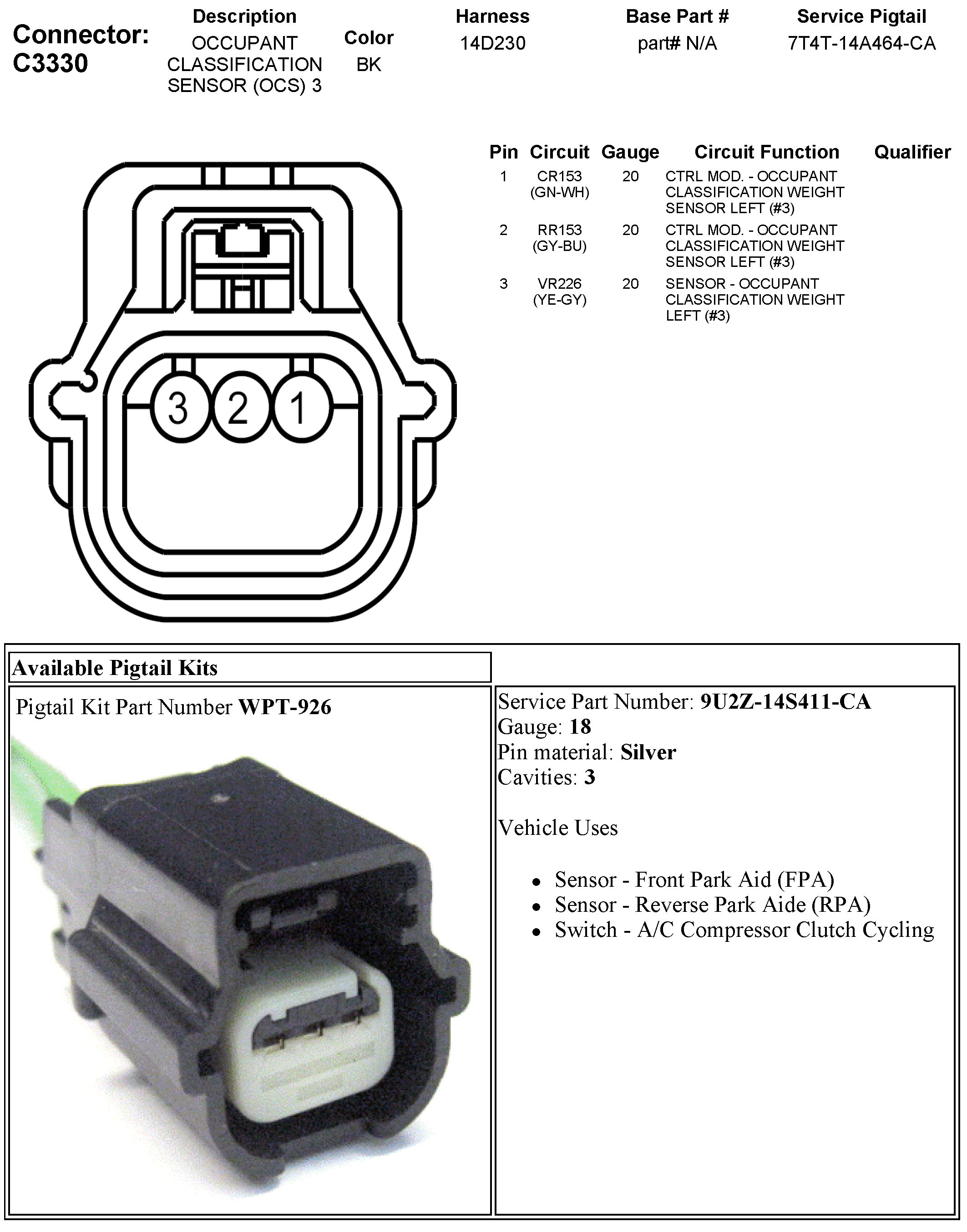 C3330 Occupant Classification Sensor (OCS) 3