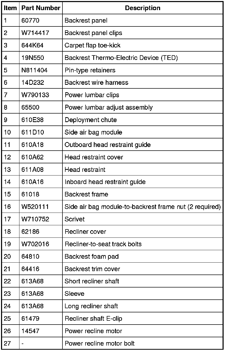 Passenger backrest shown, driver backrest similar.