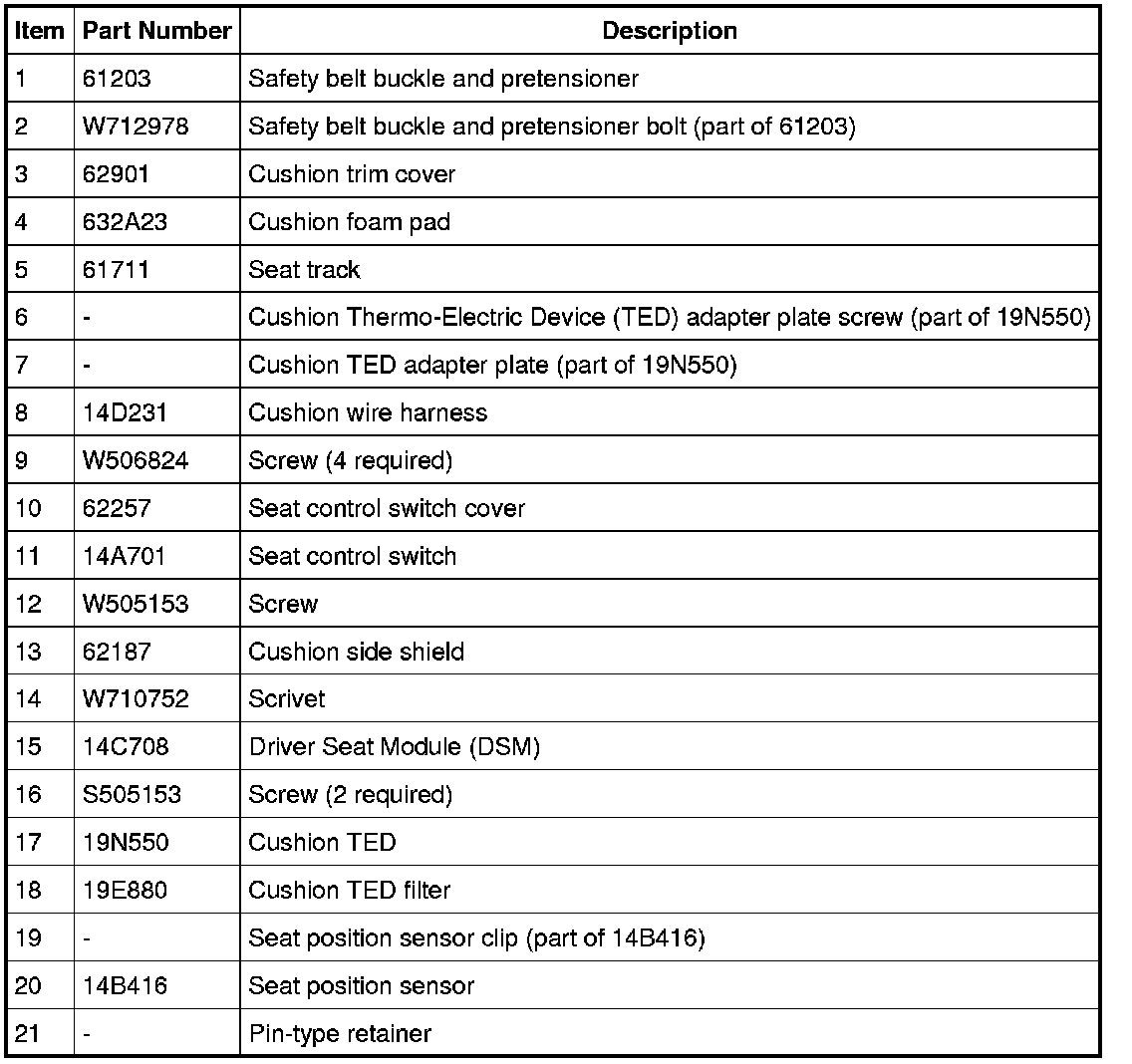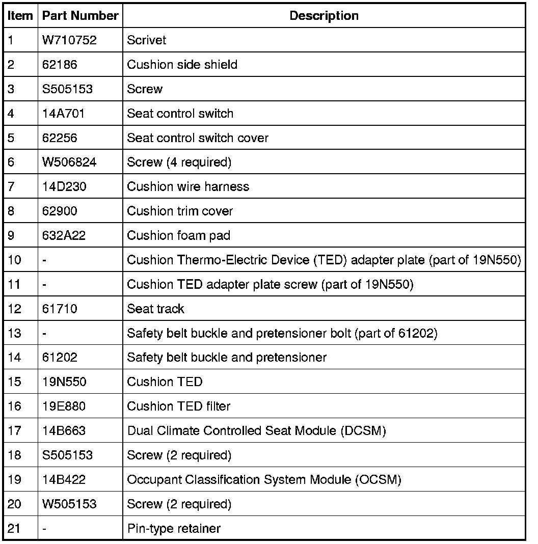 Seat - Exploded View, Front
