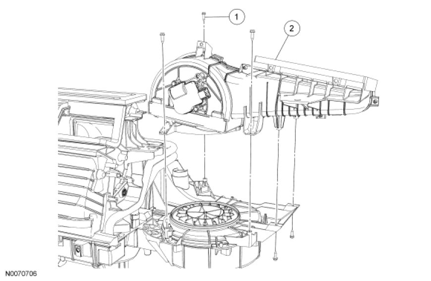 1. Remove the heater core and evaporator core housing. For additional information, refer to Heater Core And Evaporator Core Housing Service and Repair.