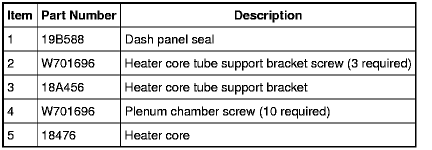 NOTE: If a heater core leak is suspected, the heater core must be pressure leak tested before it is removed from the vehicle. For additional information, refer to Climate Control System - General Information and Diagnostics Testing and Inspection.