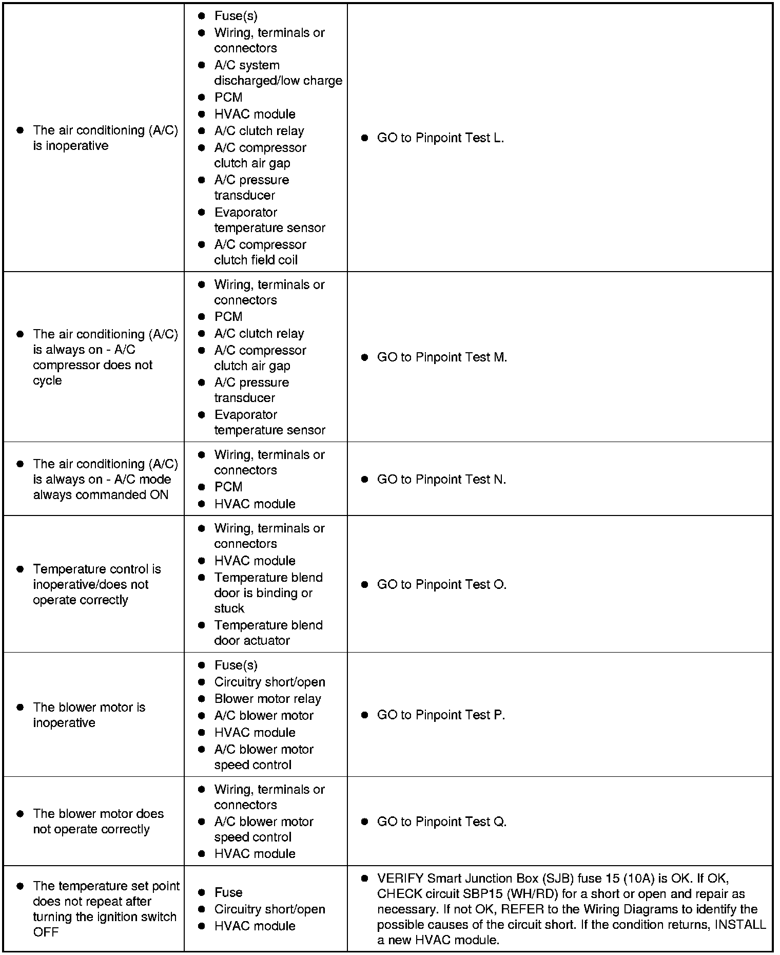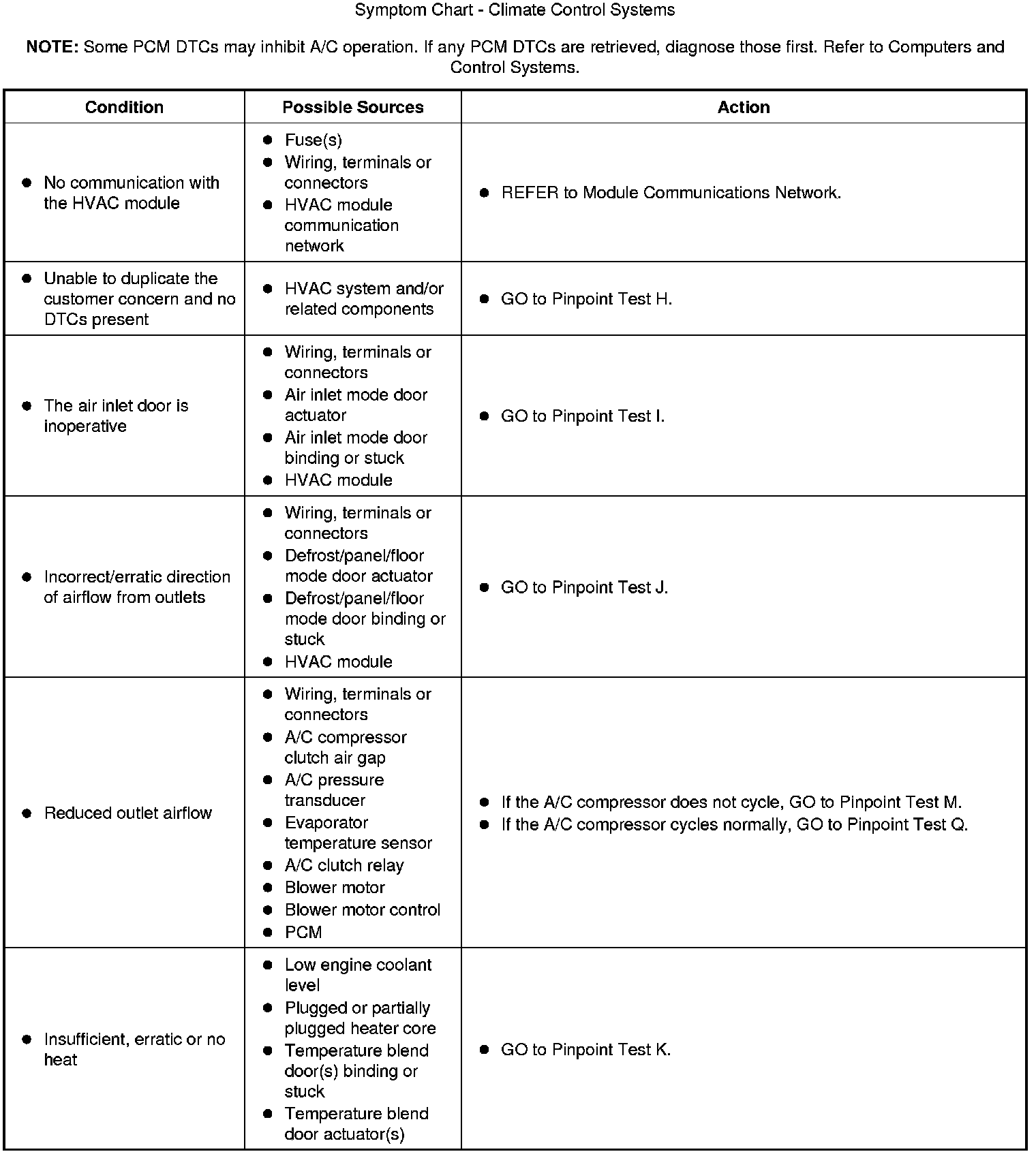 Symptom Chart - Climate Control Systems