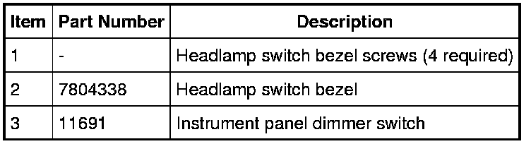 5. NOTE: The instrument panel dimmer switch is removed by releasing the tabs and pushing from behind.
