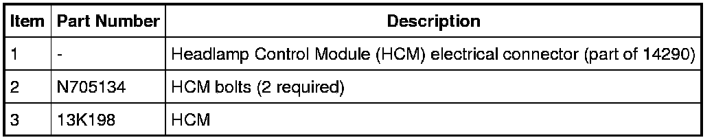NOTE: The Headlamp Control Module (HCM) is located below the LH headlamp assembly.