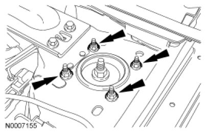 4. NOTE: Do not rotate the strut mount to any other position than 180 degrees from its original position, the notch (located on top of the strut mount) must either point inward (towards the engine) or outward (towards the fender).