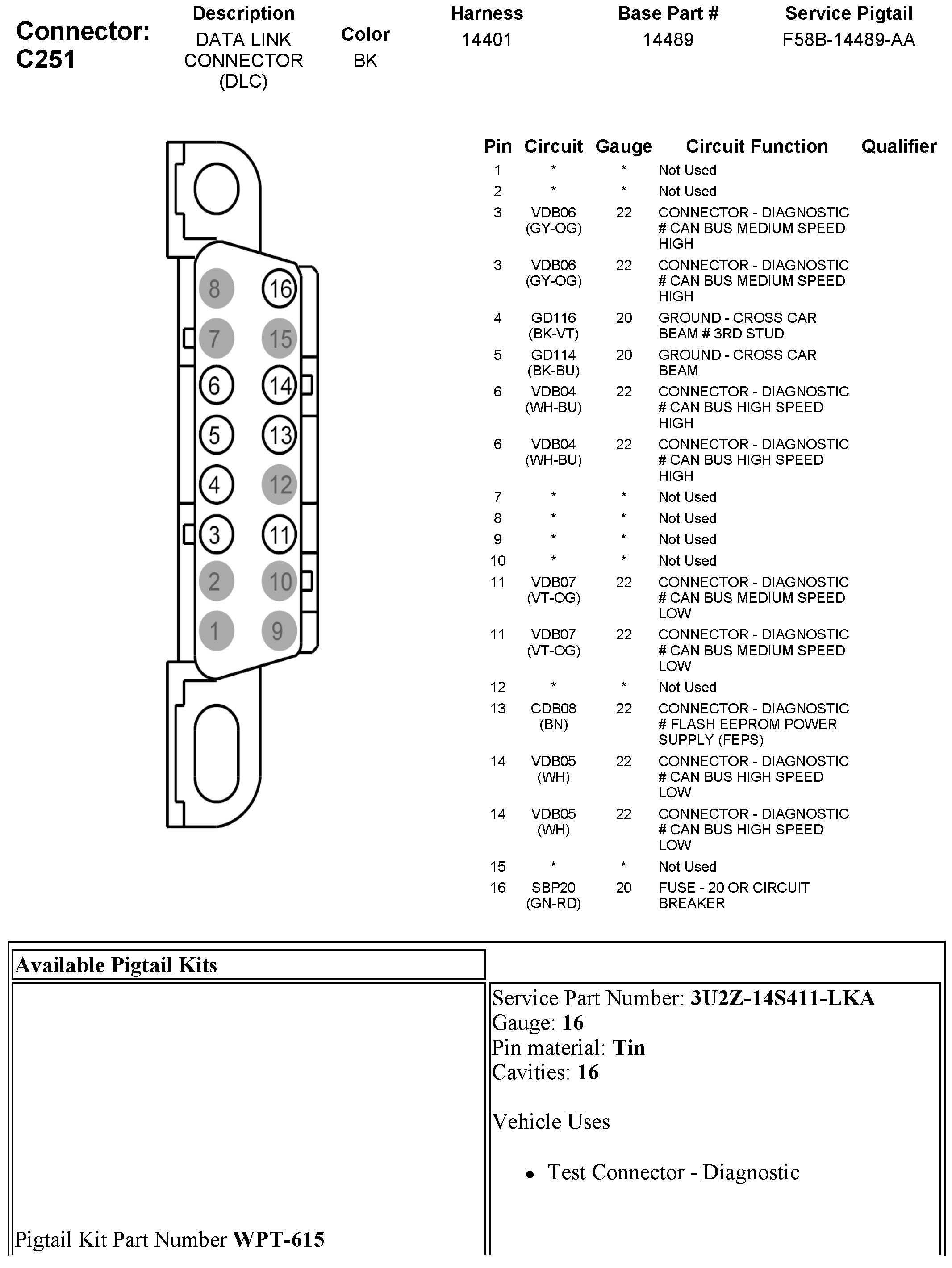 Data Link Connector: Diagrams