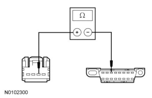 - Measure the resistance between the FCIM C2402-2, circuit VDB06 (GY/OG), harness side and the DLC C251-3, circuit VDB06 (GY/OG), harness side.