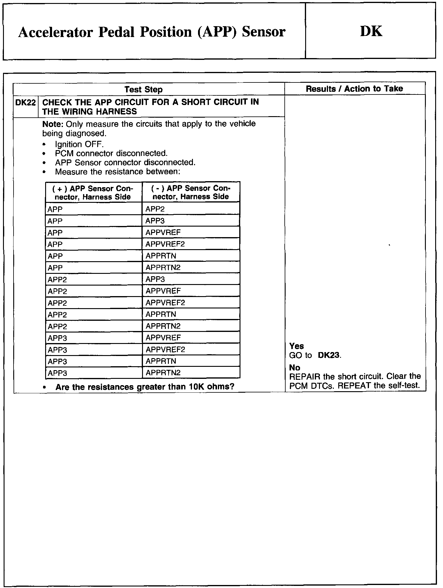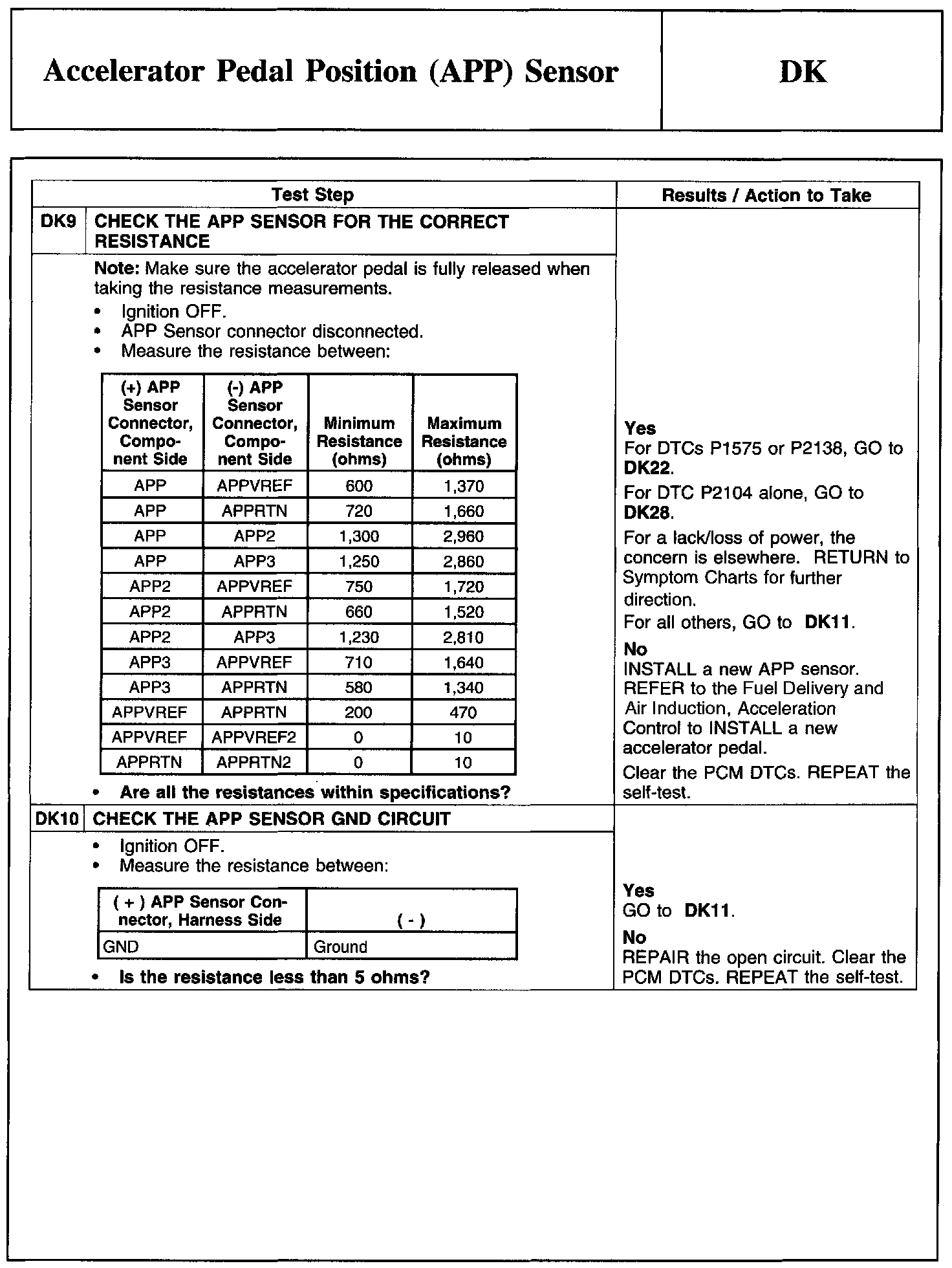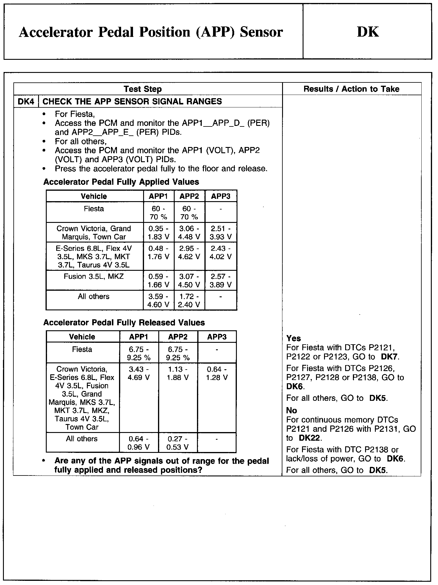 Test DK: Accelerator Pedal Position (APP) Sensor