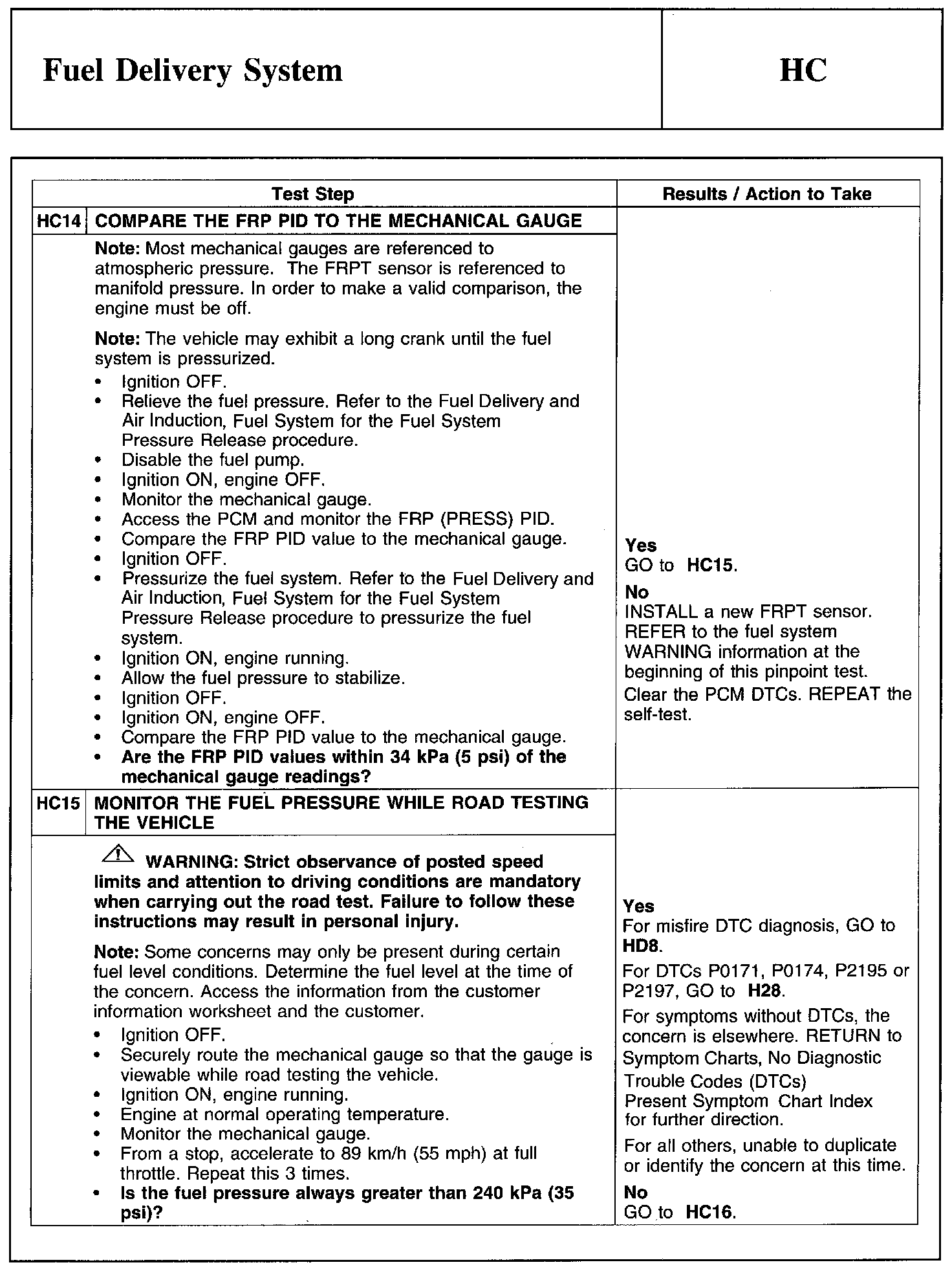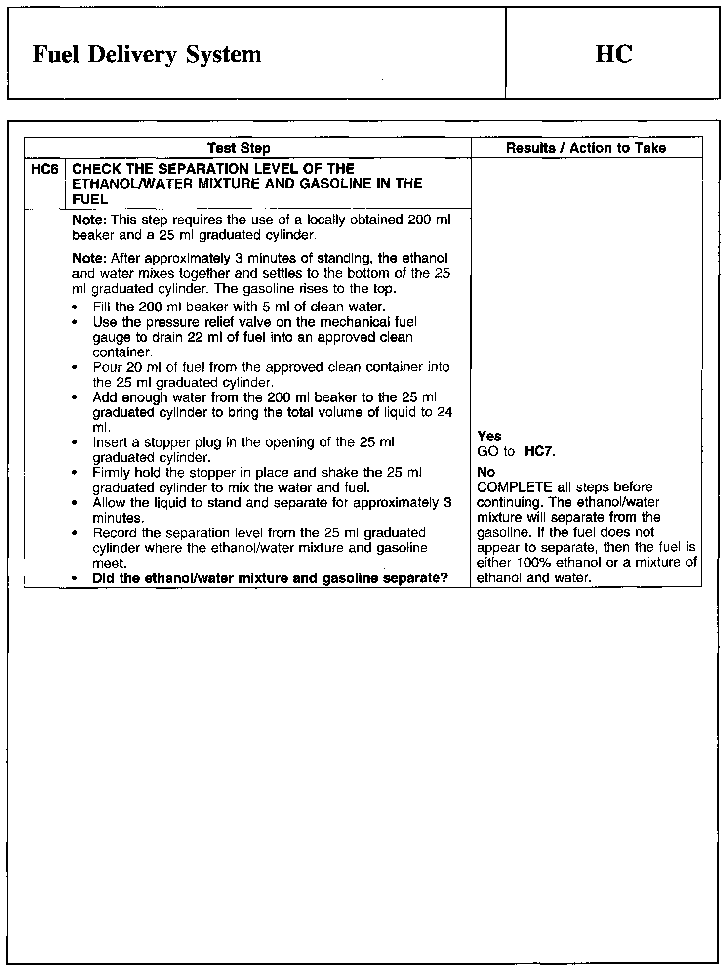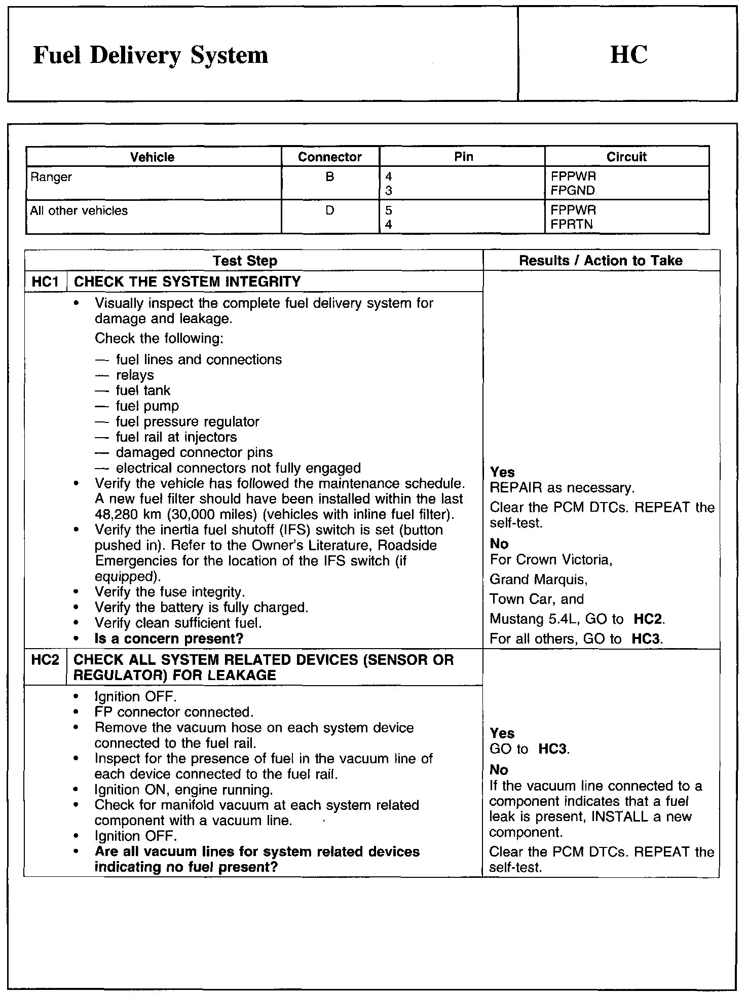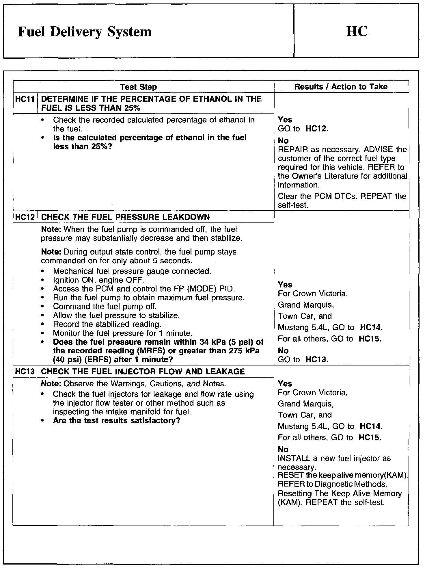 Test HC: Fuel Delivery System
