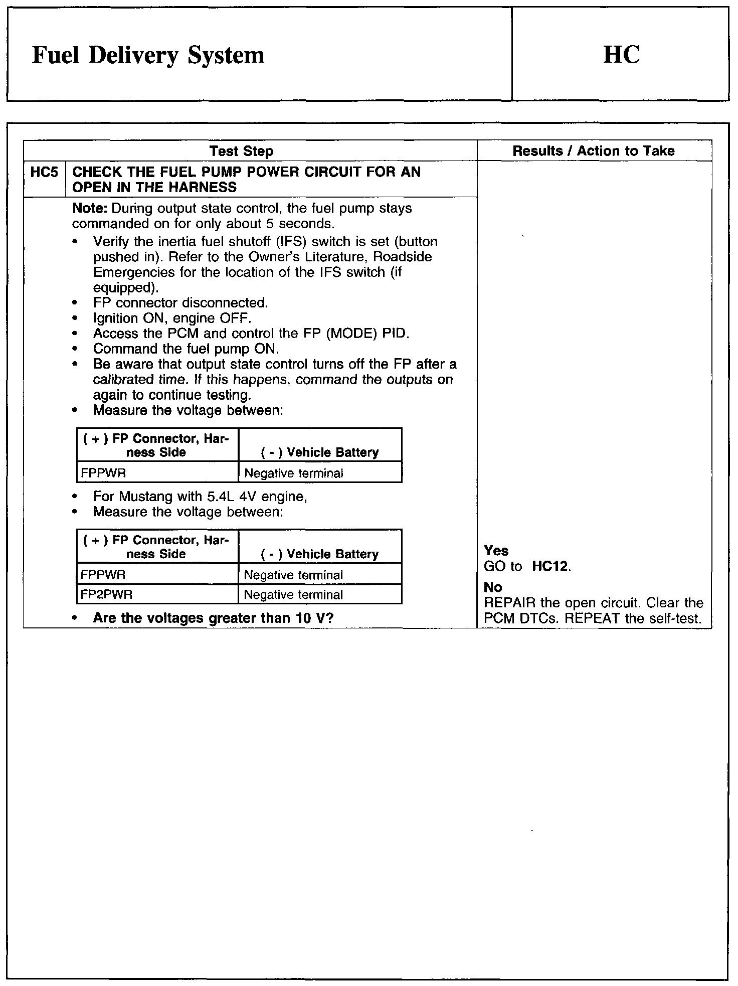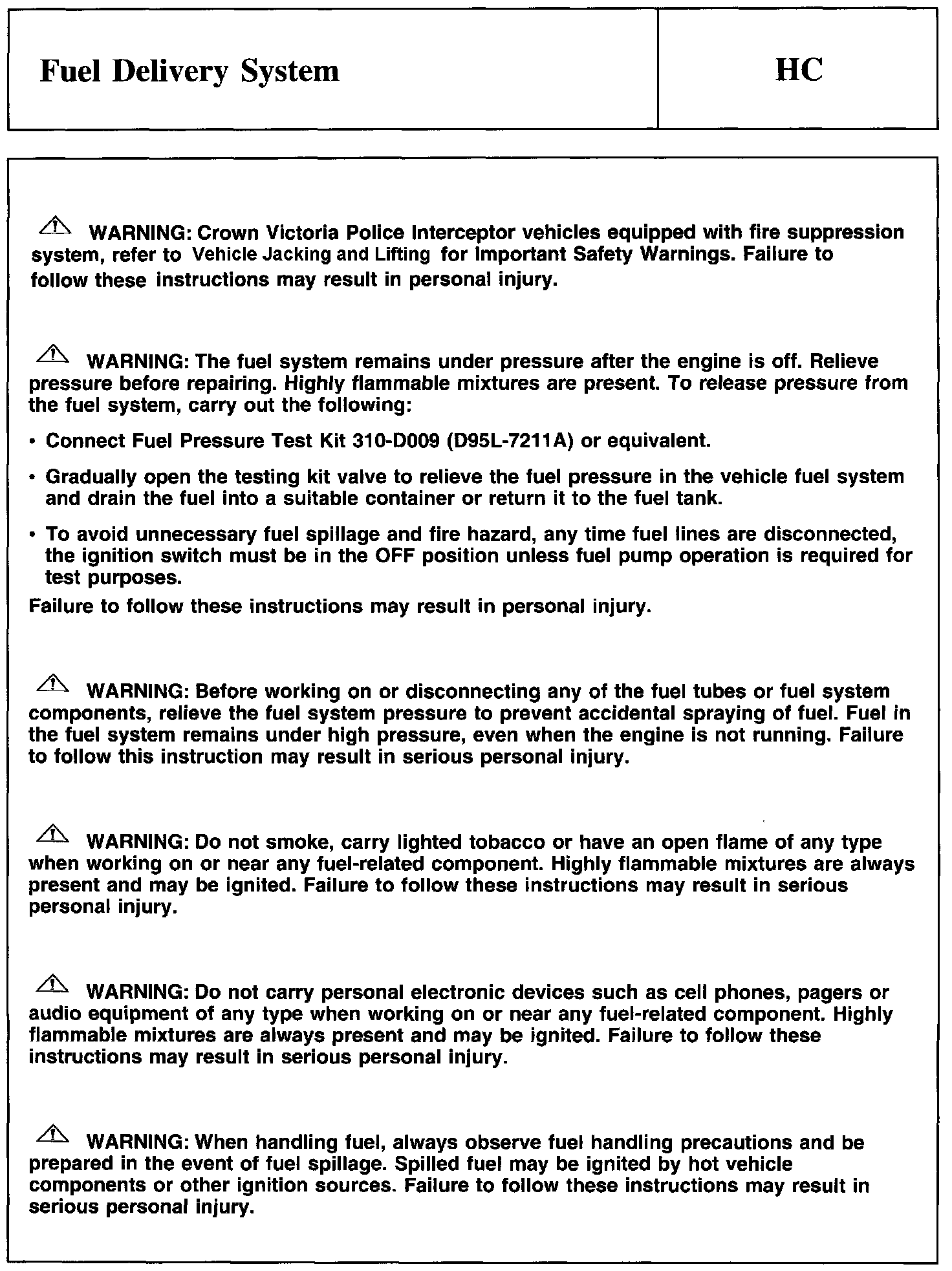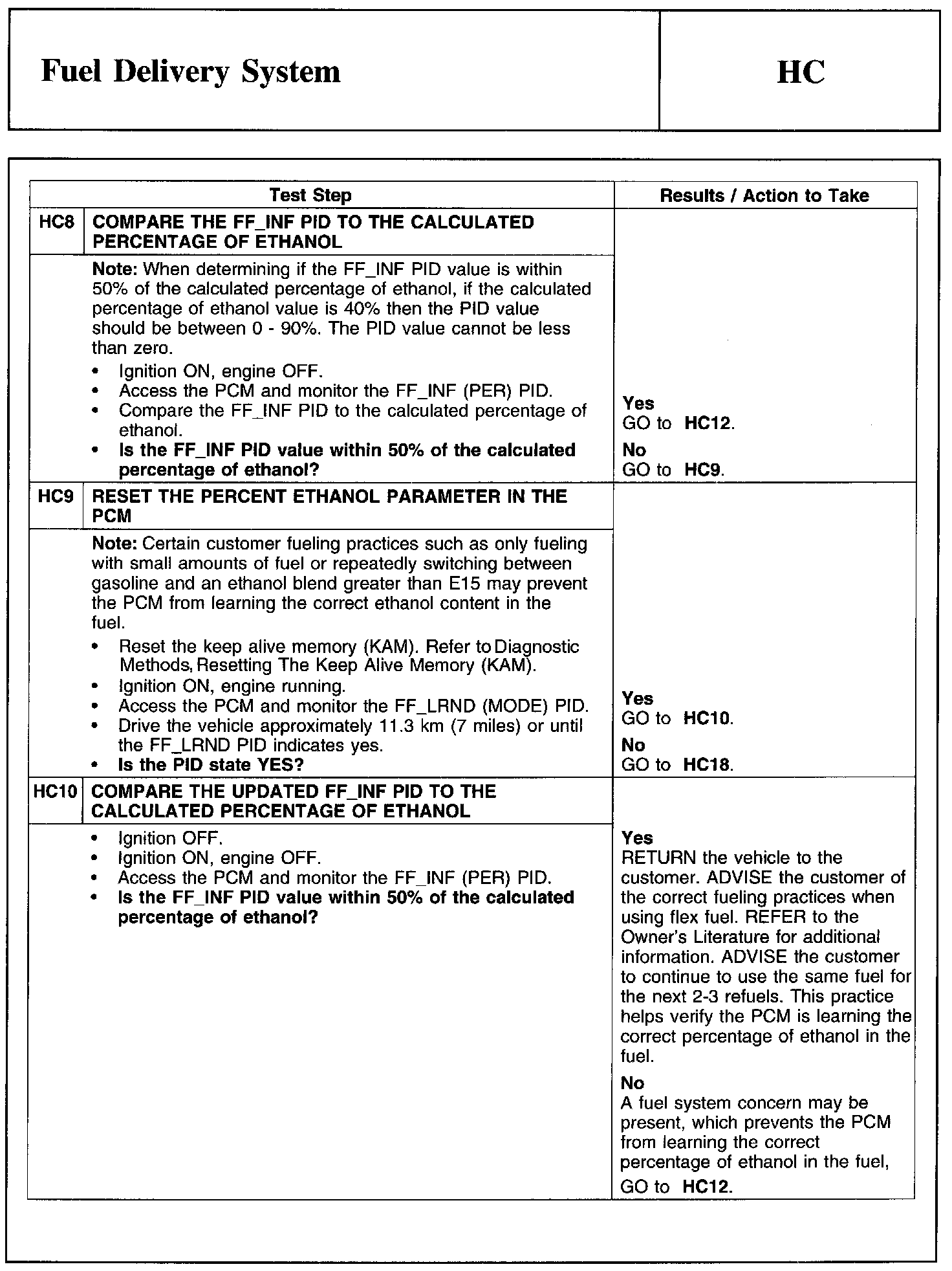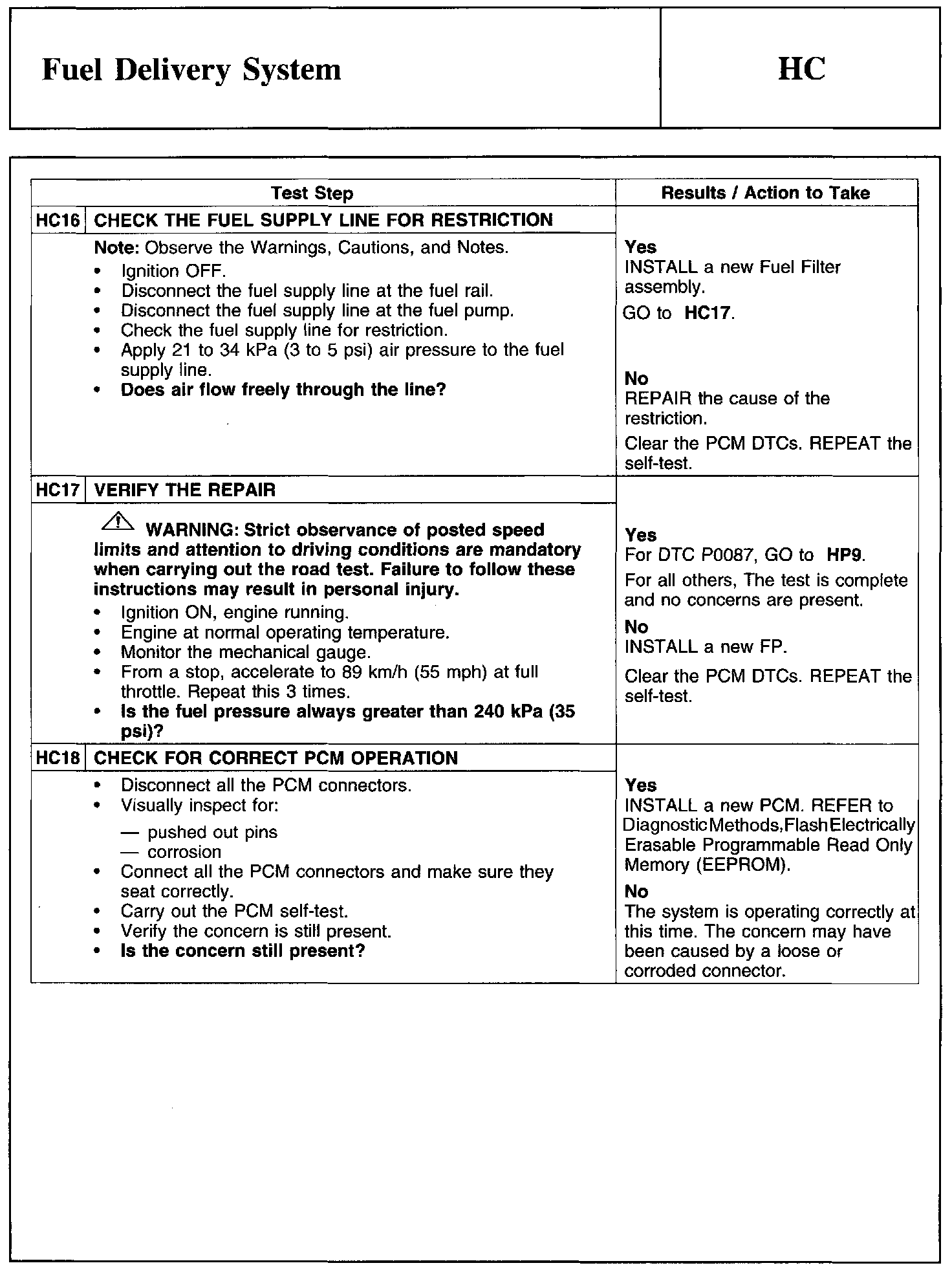 Test HC: Fuel Delivery System