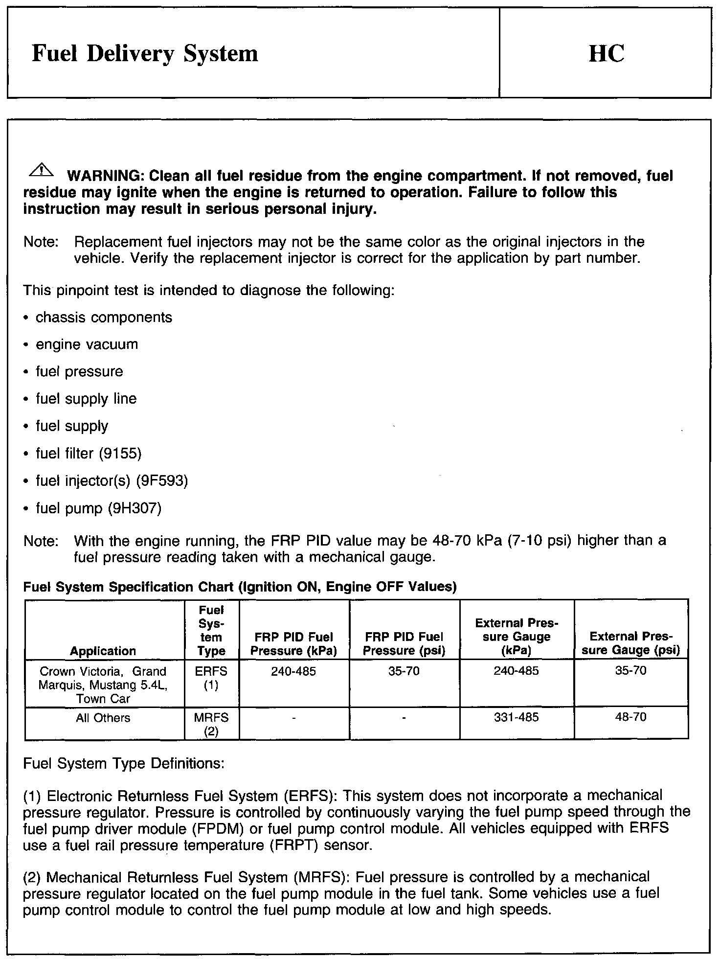 PINPOINT TEST HC: FUEL DELIVERY SYSTEM