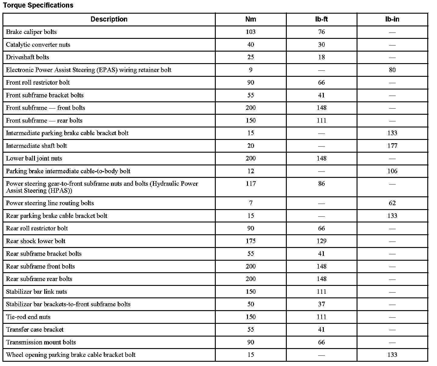 Torque Specifications:
