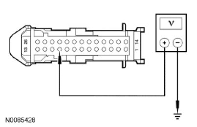 - Measure the voltage between SJB C2280C-10, circuit CPW01 (BN/BU), harness side and ground.