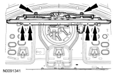 1. Remove the parcel shelf. For additional information, refer to Parcel Shelf Service and Repair.
