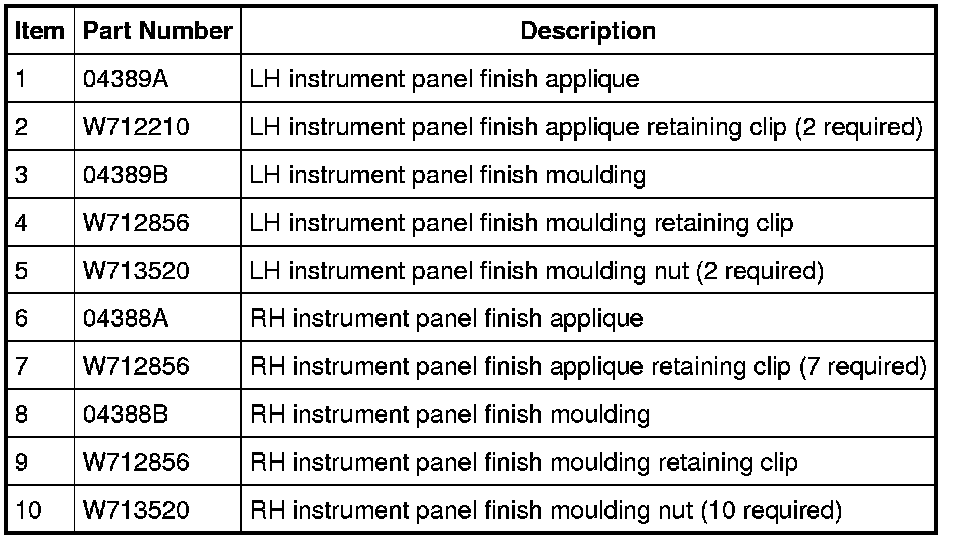 Instrument Panel Finish Mouldings and Appliques