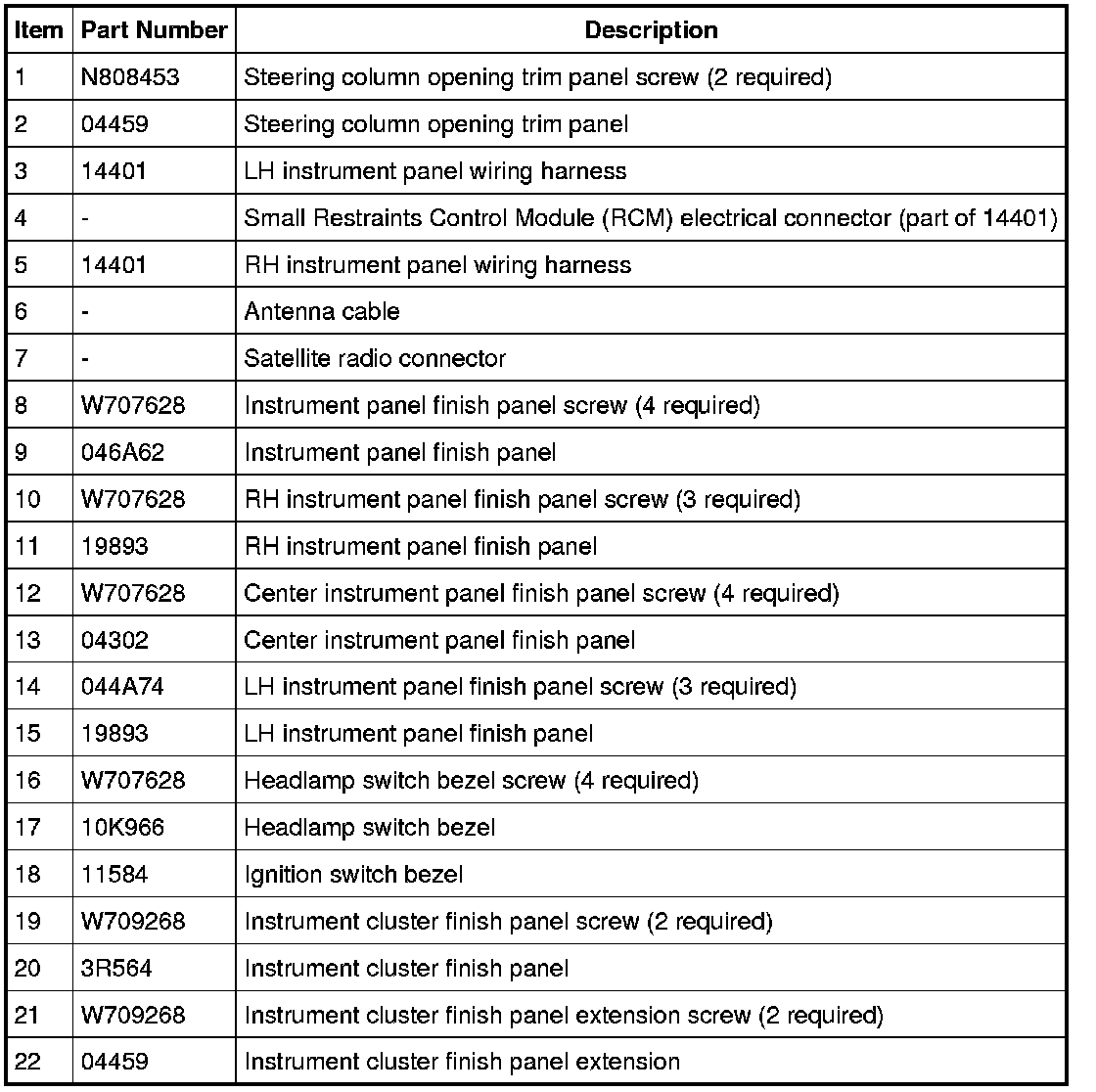 Instrument Panel - Exploded View
