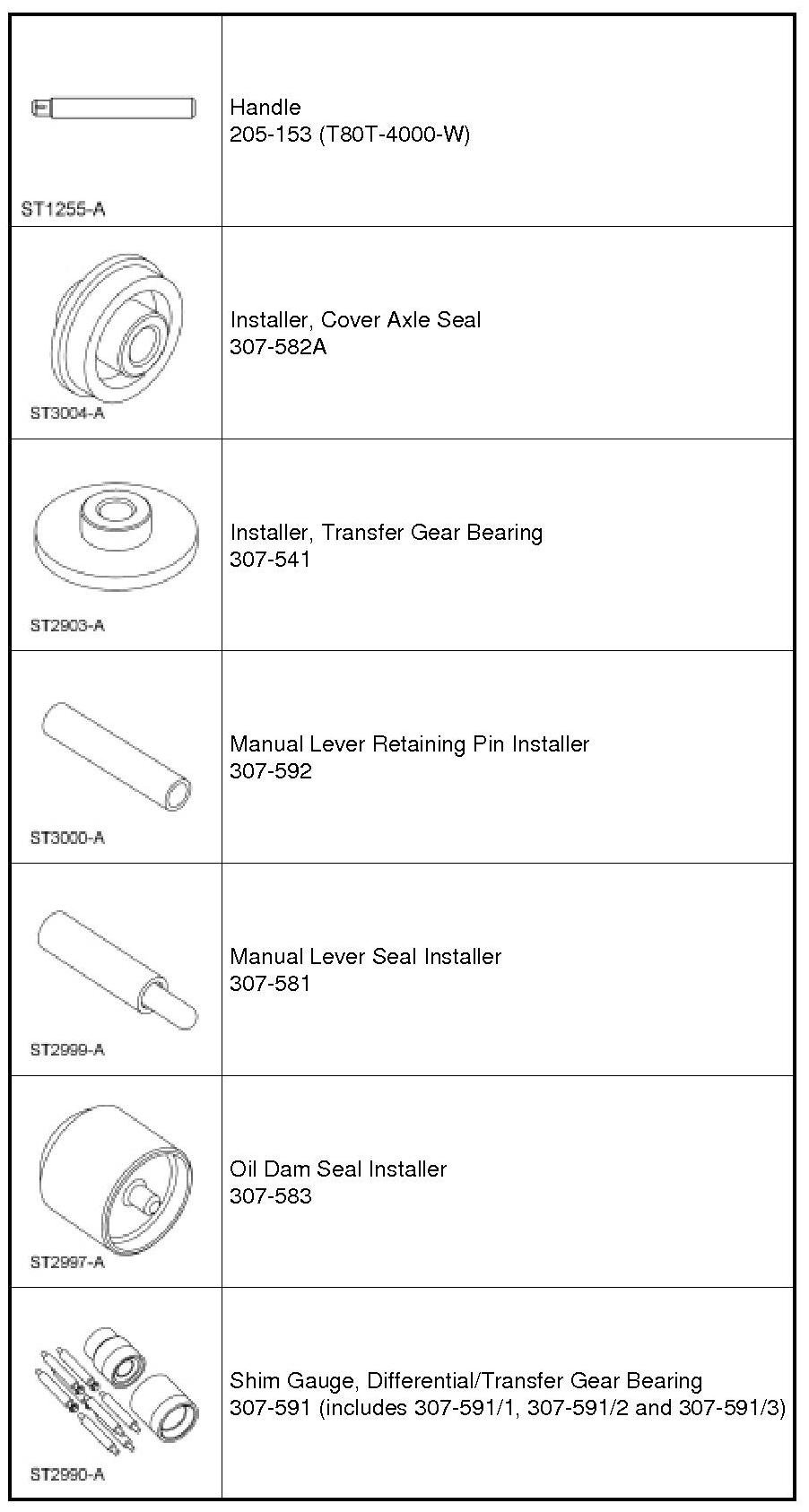 59. Assemble the Handle 205-153 and the Cover Axle Seal Installer 307-582A, install a new halfshaft seal on Cover Axle Seal Installer 307-582A.