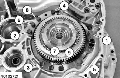 53. Install the stator support bolts. Tighten in the sequence shown.