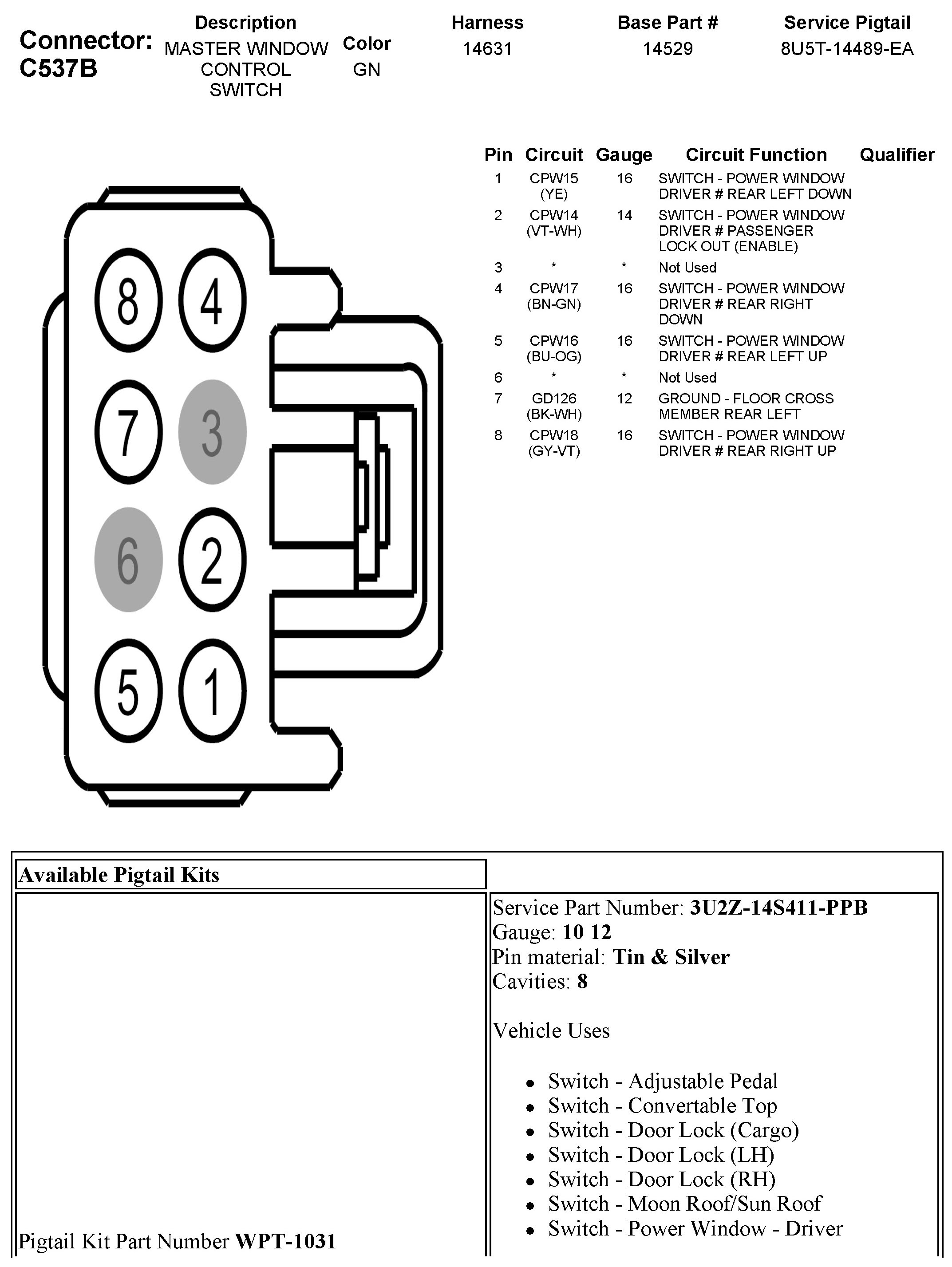 C537B Master Window Control Switch
