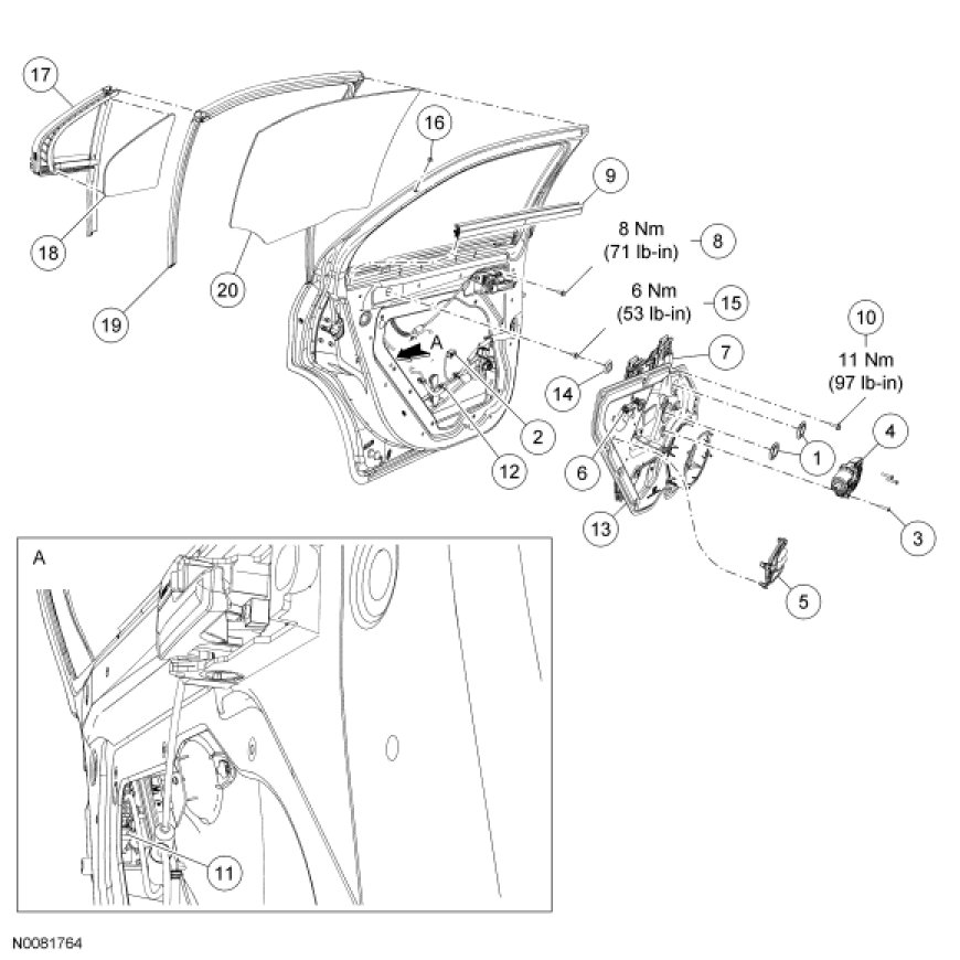 Glass, Frames and Mechanisms - Exploded View, Rear Door