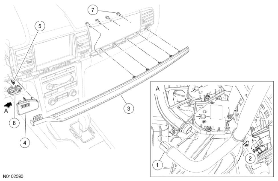 1. Remove the instrument cluster finish panel. For additional information, refer to Instrument Panel and Console Service and Repair.