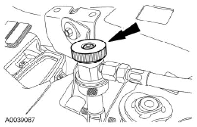 8. Remove the dye/lubricant injector from the low-pressure service gauge port valve and the R-134a Refrigerant Center or R-134a Manifold Gauge Set.