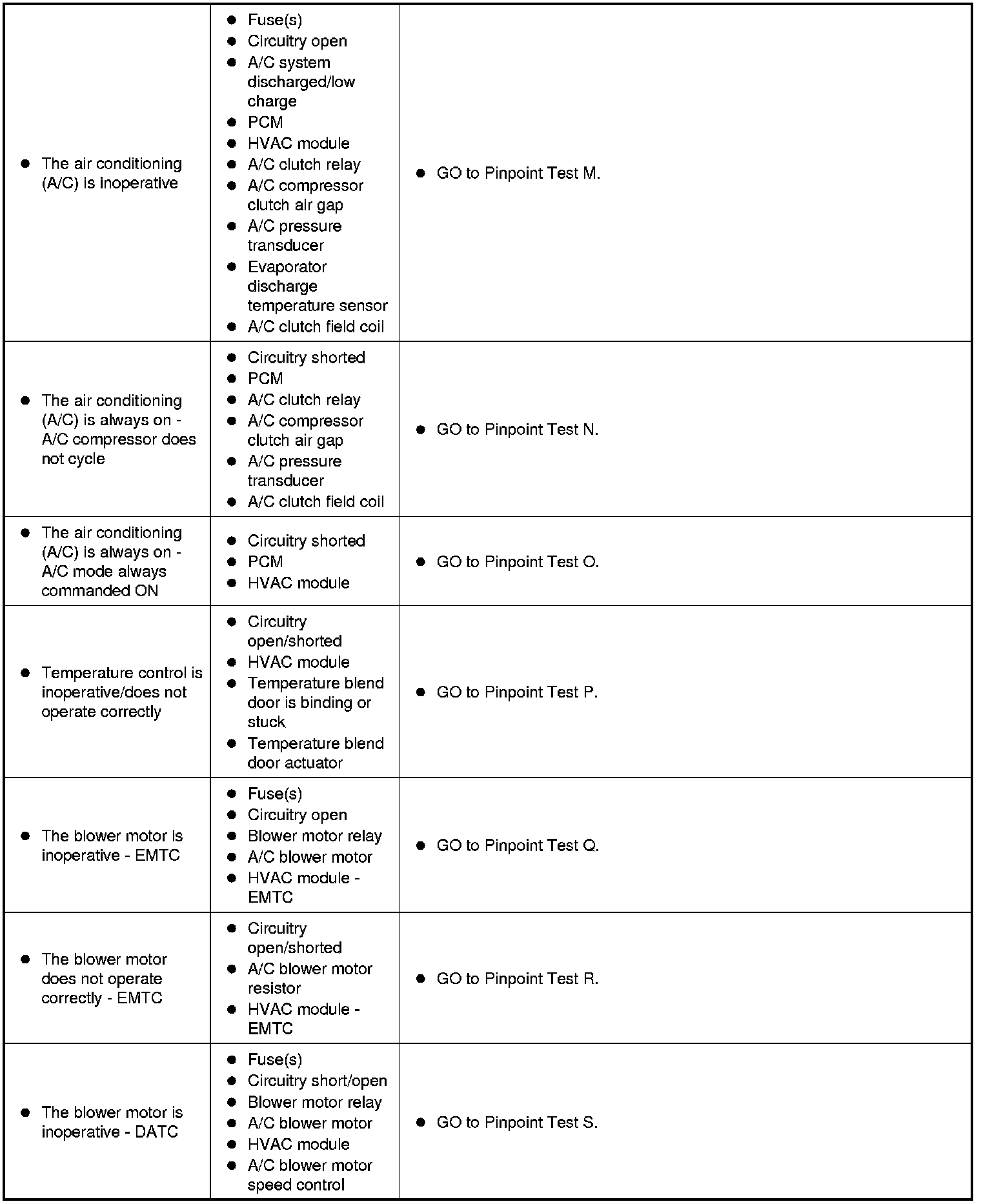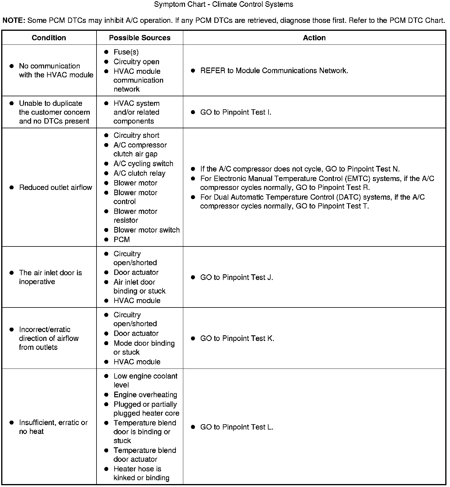 Symptom Chart - Climate Control Systems