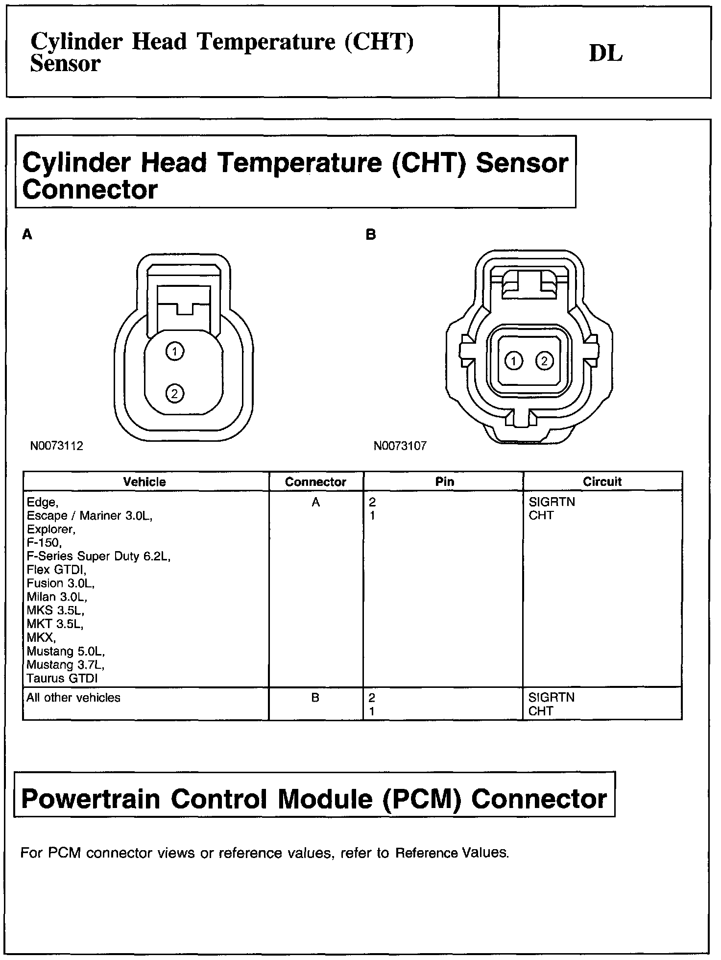 Cylinder Head Temperature (CHT) Sensor Connector And Powertrain Control Module (PCM) Connector: